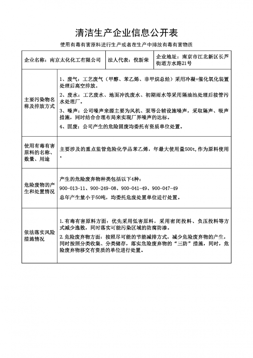 清洁生产企业信息公开表